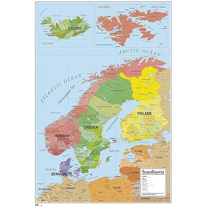 Close Up Karte von Skandinavien Poster Map of Scandinavia (61cm x Skandinavien Karte ACP Rail.